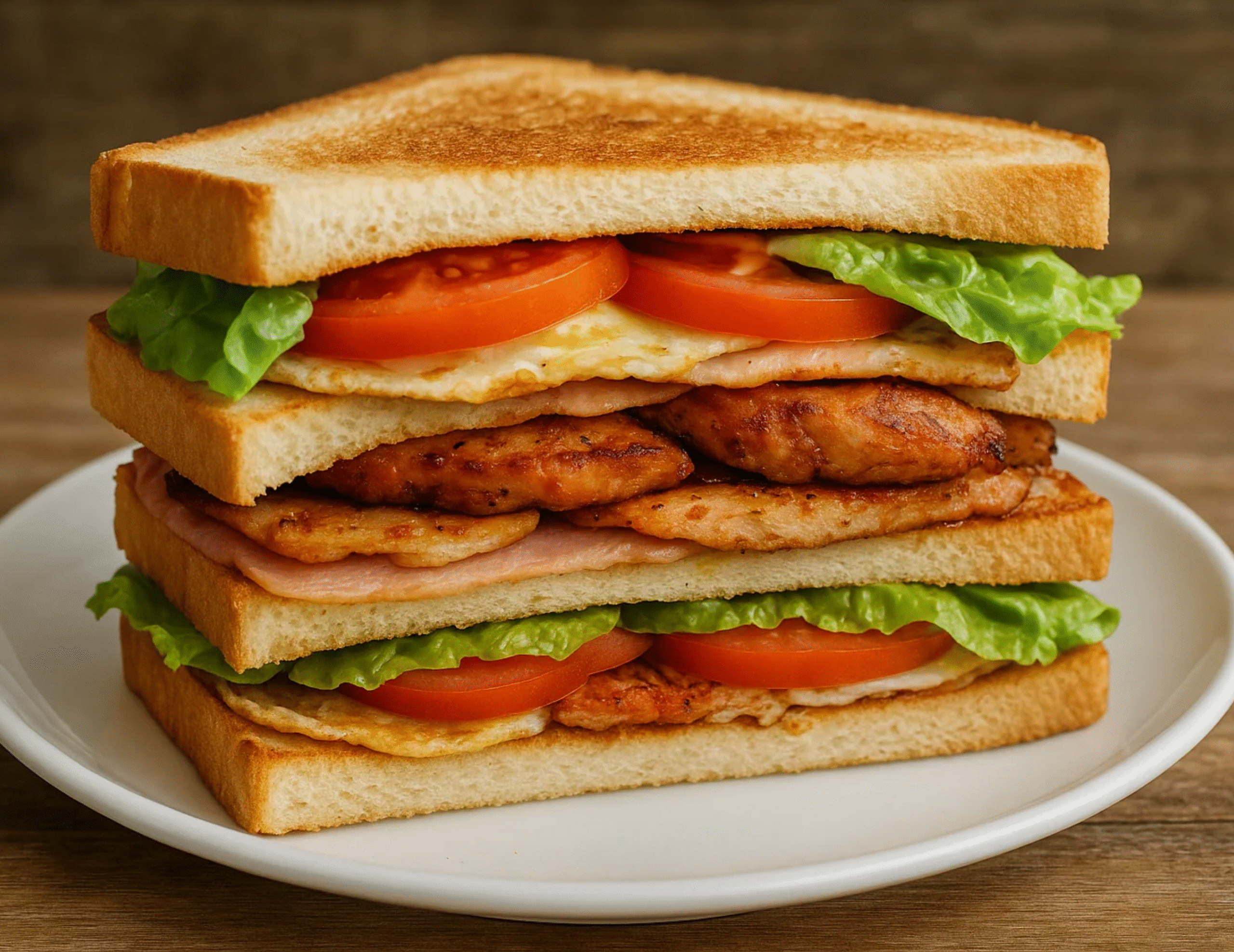A hearty triple-layer sandwich made with soft Agege bread, chicken breast, turkey bacon, eggs, cheese, and our signature sauce blend. Big on flavour, perfect for lunch on the move.